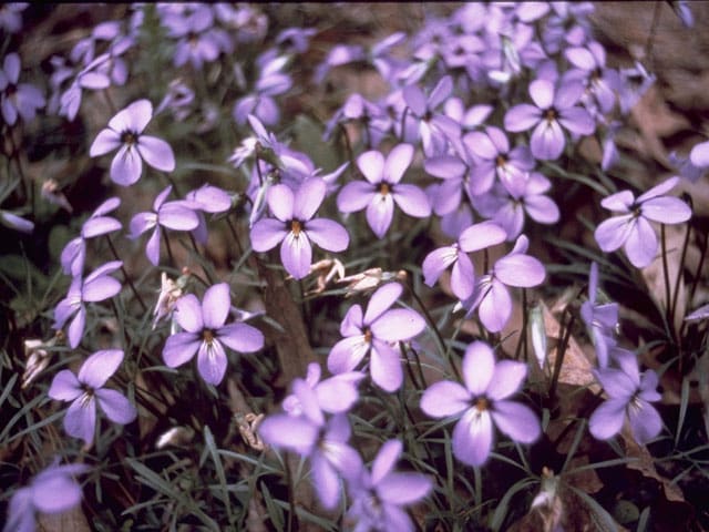 A most beautiful Violet of dry, upland sites. Its showy, light violet-blue flowers, distinctive “bird’s-foot”-shaped leaves make it easy to identify. It is pollinated by bees and butterflies. The bicolored form of this species, with its 2 upper petals a deep violet and the lower 3 a lilac shade, has been considered the most beautiful Violet in the world. This violet does not reproduce vegetatively like most other violets. Reproduction is by seed only.